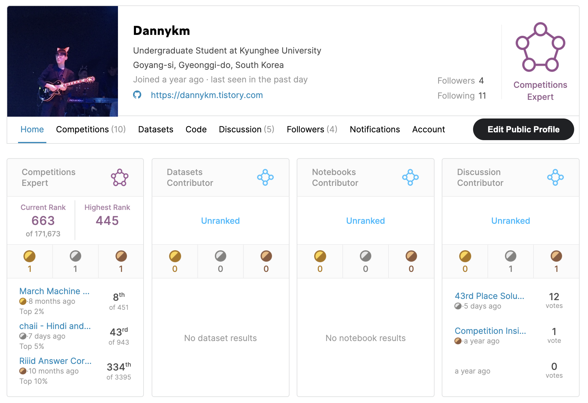그리고 이번 대회에서 은메달을 따게 되며 금1, 은1, 동1의 색깔별 메달을 하나씩 가지게 되었다. 이제 은메달 1개를 추가하면 Competition Master가 될 수 있다는 사실이 꿈만 같다. 다른 대회에 열심히 참여해 2022년이 가기 전에 꼭 Master를 달성하고 싶다!